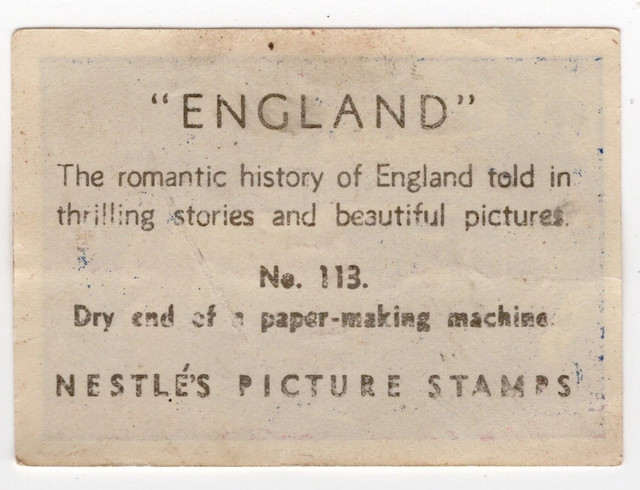 Nestle's sticker stamp  'England' Paper making machine    1936