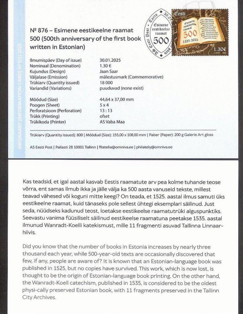 Issued on 30 January 2025   The 500th Anniversary of the First Book Written in Estonian