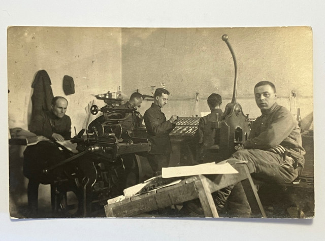 Postcard from 1916   Militaria Austria Hungary Habsburg    soldiers in a print shop 1916