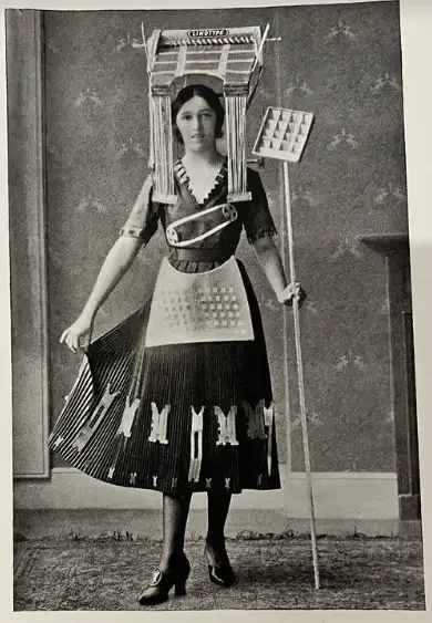 Doug's paid another visit to St. Bride's Library in London to research his book. He has come up with some great stuff, including this picture of a lady wearing a Linotype dress!