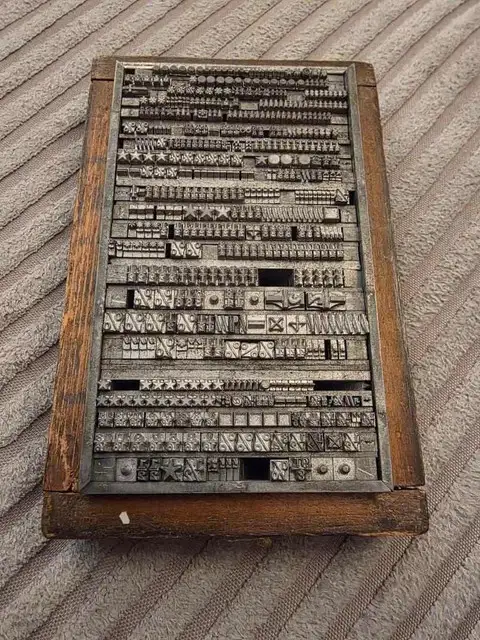 A number of years ago he showed me this box of typesetting characters that he had made. He said that all of the guys in print made their own boxes (spares mainly) and carried them round all day for when odd characters were needed, and i just thought it was brilliant. I have found the box which has brought back great memories.